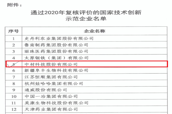 近日,工业和信息化部办公厅发布了《关于公布2020年国家技术创新示范企业复核评价结果的通知》(工信厅科函[2020]220号),中材科技股份有限公司以优异的成绩顺利通过此次复核评价。