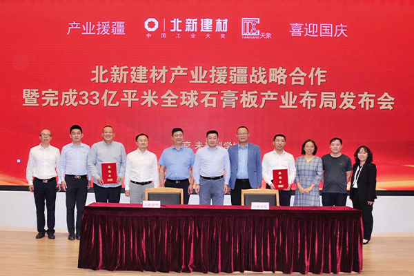 9月29日,北新建材新疆石膏板产业布局战略合作正式确定,以实际行动践行中央新疆工作会议精神,产业援疆,富民兴疆,为新疆经济社会发展和产业升级多做贡献,向国庆献礼。北新建材党委书记、董事长王兵出席发布会。