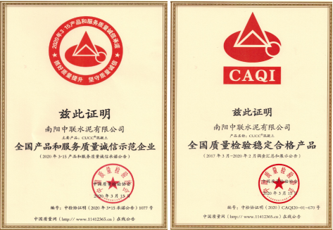 日前,由中国质量检验协会举办的2020年“3.15”国际消费者权益日“产品和服务质量诚信承诺”主题活动中,南阳中联凭借优质的混凝土质量和品牌形象,荣获“全国产品和服务质量诚信示范企业”、“全国质量检验稳定合格产品”两项殊荣。