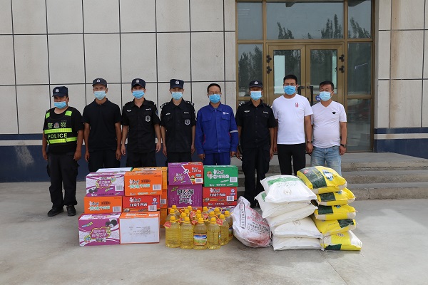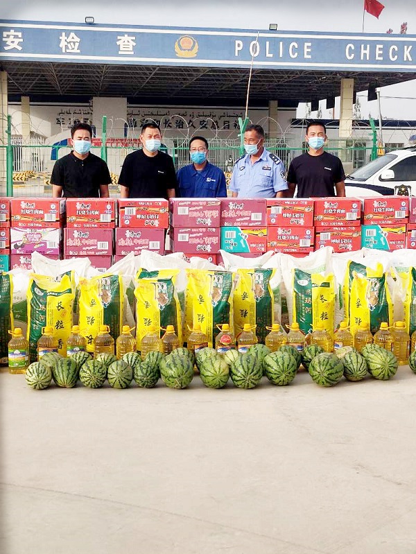 “越是疫情防控紧要关头,越要时刻关注坚守一线人员”。8月4日、8月5日,叶城天山副经理孙景鹏、伟鸿供应链经理巩永明、叶城营销部崔正赟在做好自身防疫的同时在叶城县副县长木塔力甫·吾甫尔、县公安局副局长王国正、交警大队长包锐的陪同下,看望慰问当地70公里柯克亚检查站、91号警务站警务和医务人员。对他们一直以来无怨无悔的默默坚守疫情防控工作致以崇高的敬意和诚挚的感谢,并为警务、医务工作人员送去米、面、油、西瓜、方便面等生活用品。